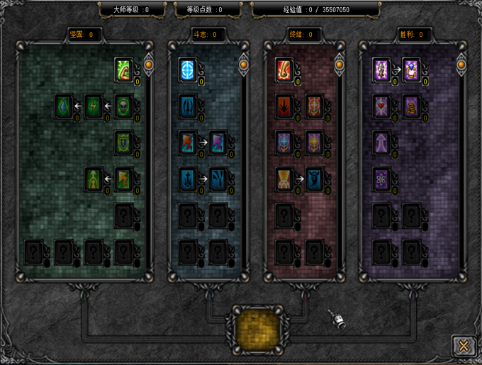 大师技能树状图为4个,依职业会有所不同 如果技能图是为彩色可点选时,代表可以学习该技能 |